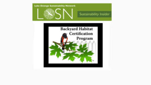 The Backyard Habitat Certification Program provides technical assistance and incentives to Lake Oswego residents who wish to restore native wildlife habitat in their backyards. Participants are guided through three levels of habitat restoration: silver, gold, and platinum. The program focuses on the removal of aggressive weeds, naturescaping with native plants, stormwater management, and wildlife stewardship.