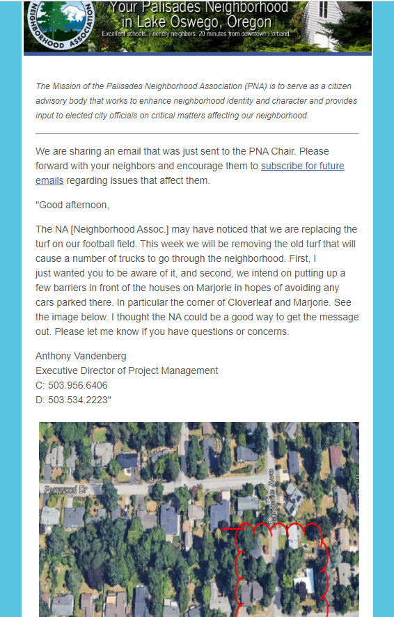 News of Construction Affecting PNA Area 9 week of 11/27/2023